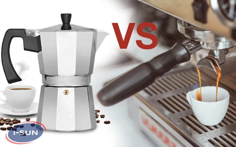 در مقایسه با دستگاه اسپرسو ساز دستگاه قهوه ساز بسیار پیچیده تر است. در حالی که موکا پات از چیزی جز آتش (اجاق گاز) برای گرم کردن آب استفاده نمی کند، دستگاه اسپرسوساز از موتورها، عناصر گرمایشی و وسایل الکترونیکی برای دم کردن صحیح اسپرسو استفاده می کند.