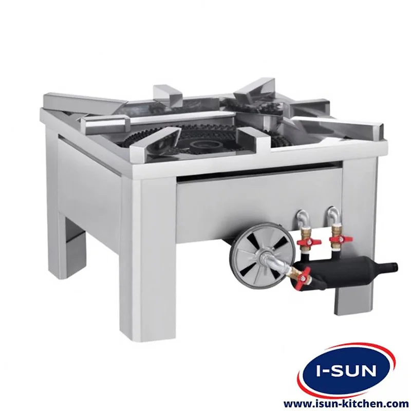اجاق پلوپز 3 شعله کوره دار آیسان یک اجاق زمینی ساخته شده استیل 304 نگیر در قسمت بدنه و پروفیل استیل 304 نگیر در قسمت رویه می باشد که برای انواع کارهای مختلف از جمله پخت برنج، خورشت، آش، حلیم و… مورد استفاده قرار می گیرد. وجود قسمت کوره در این مدل اجاق ها باعث انتقال حرارت با شدت بیشتر و در نهایت پخت سریع تر و با حجم بالاتر می گردد. ضمنا علاوه بر استفاده در آشپزخانه های صنعتی این اجاق می تواند در بسیاری از کارگاه های خانگی پخت رب، سرخ کردن سبزی و پیاز و بسیاری از کارها از این دست مورد استفاده قرار گیرد. علت استفاده ی پروفیل در قسمت رویه ی این اجاق ها تامین مقاومت دستگاه در برابر وزن انواع دیگ های مورد استفاده روی آن می باشد. از آنجاییکه این مدل اجاق ها در انواع جاها مورد استفاده می باشد بسیار پر طرفدار می باشد. همچنین در مقابسه با تجهیزات مختلف، این مدل اجاق بسیار مقرون به صرفه و کم هزینه می باشد. و با توجه به قابلیت جابجایی آسان می تواند در بسیاری از جاها مورد استفاده قرار بگیرد. معمولا در آشپزخانه های صنعتی چند اجاق کنار هم قرار داده می شود و از طریق لوله کشی های انجام شده به گاز شهری متصل می گردد تا یک خط پخت تشکیل شود.