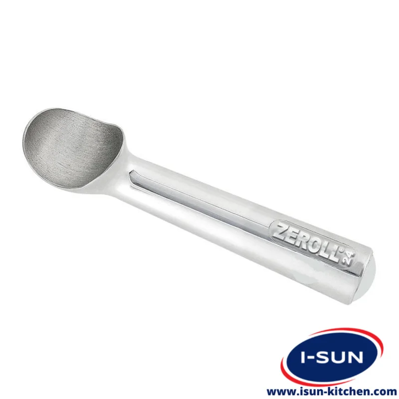 اسکوپ بستنی زرول Zeroll ساخت امریکا دارای طراحی منحصر به فردی است که تکه های بستنی، کیک، شیرینی را به زیبایی هرچه تمام تر به شکل گرد در می آورد. از این وسیله کاربردی آشپزخانه می توانید در طبخ کیک و شیرینی نیز یاری بگیرید. کاپ گرد تعبیه شده روی این قاشق به شما کمک میکند تا از آن در طبخ غذا، پخت کیک، شیرینی، تزیین بستنی استفاده نمائید. این محصول ظرف مدت زمان کوتاهی جزو محبوب ترین ابزار های آشپزخانه شده است و کدبانو های خوش ذوق و با سلیقه از آن برای تزئین دسر بستنی و مدل های کیک گرد در منزل خود استفاده می نمایند. اسکوپ های رویه استیل داخل جیوه ای زرول آمریکا در سایز های مختلف طراحی شده اند که مایع هدایت گرما در داخل دسته قرار دارد و قابل شستشو در ماشین ظرفشویی بوذه و در برابر زنگ خوردگی و ضربه مقاوم است.