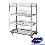 یکی از محصولات کاربردی در آشپزخانه های صنعتی ترولی آبچکان می باشد. به این علت که تجهیزات مورد استفاده در قسمت آشپزی و یا آماده سازی غذاها مدام مورد استفاده هستند و ممکن است این تجهیزات نیاز به چندین بار شستشو در طول یک روز کاری پیدا کنند. بهمین خاطر با توجه به حجم بالای کار در آشپزخانه های صنعتی جابجا کردن تجهیزات از قسمت شستشو به قسمت های مورد نظر کاری وقت گیر و انرژی بر می باشد بر همین اساس ترولی آبچکان هم می تواند یک دستگاه با جای کافی برای گذاشتن انواع ظروف و تجهیزات باشد و وسیله ای برای انتقال سریع این تجهیزات به قسمت مورد استفاده. طبقاتی که می توان در ترولی گذاشت عبارتند از جای لیوان، قاشق و چنگال، سینی و بشقاب و تجهیزات می باشد که به انتخاب مشتری سفارش و ساخته خواهد شد. از آنجاییکه ترولی آبچکان دائما با آب در تماس است قطعات آن در قسمت چهارچوب از استیل نگیر 304 ضد زنگ ساخته می شود و در قسمت گذاشتن ظروف از جنس مفتول آهنی با روکش پی وی سی می باشد. دستگاه دارای چرخ های مقاوم ترمزدار می باشد که در اثر حرکت زیاد به راحتی آسیب نخواد دید و به مدت طولانی توانایی کار کردن را دارد.