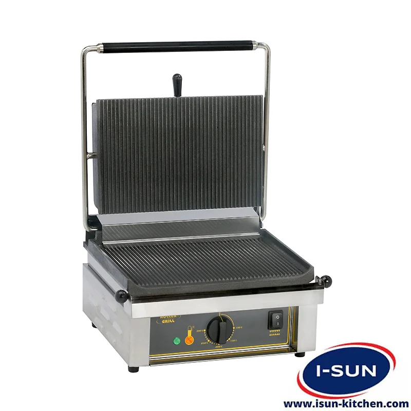 دستگاه پنینی Grill Roller با استفاده از صفحات چدنی منحصر به فرد قادر است به طور ایده آل با حفظ طعم و خواص جهت پخت انواع برگر، استیک، ماهی یا مرغ بدون خشک شدن آن به کار گرفته شود. صفحه بالایی با برخورداری از تکنولوژی تنظیم خودکار فشار و با انتقال حرارت یکسان به تمام قسمت های مواد غذایی، پخت ایده آل آن را موجب می گردد. ظرفیت پخت ٤٨ ساندویچ پنینی در ساعت تنظیم دمای ٣٢٠ – ٥٠ درجه سانتیگراد صفحات چدنی از آلیاژ منحصر به فرد جهت انتقال ایده آل حرارت دارای سینی جمع آوری روغن با محدوده دمایی 50تا 320 درجه سانتیگراد و توان 3000 وات و جنس بدنه استیل و جنس صفحه چدن با سطح پخت 24*34 سانتی متر و وزن 5.22 کیلوگرم و در ابعاد 385*430*220 میلیمتر میباشد.