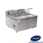 دستگاه سرخکن رومیزی 2 لگن و 2 سبد انویل یکی از محصولاتی است که امروزه در کشور چین ساخته می شود اما از نظر کیفیت در سطح بسیار بالایی قرار دارد. این دستگاه دارای 2 لگن می باشد که ظرفیت هر لگن 10 لیتر است. سوخت مصرفی دستگاه گاز می باشد که می توانداز گاز شهری استفاده نماید یا با تعویض ورودی های سوخت به گاز کپسولی متصل شود. این دستگاه ترموستاتیک بوده و به صورت اتوماتیک حرارت را قطع یا وصل می کند. دستگاه های دو لگن قابلیت پخت دو محصول متفاوت به صورت همزمان بدون مخلوط شدن بو، مزه و یا رنگ محصولات را دارد. این دستگاه ها با توجه به رومیزی بودن قابلیت استفاده در جاهایی که فضای کمتری دارند را دارد. دستگاه تمام استیل می باشد و دارای دو عدد شیر خروجی برای تخلیه ی روغن است. در قسمت بالای دستگاه محل قرار دادن سبدها جهت تخلیه ی روغن و در قسمت انتهای دستگاه نیز اگزوز جهت خروج گازهای اضافی می باشد. و دستگاه دارای دو سبد از جنس استیل می باشد. پخت محصولات مختلف در این دستگاه با توجه به دمای بالای روغن با سرعت بالا انجام می شود. این دستگاه دارای 4 عدد پایه با قابلیت تنظیم ارتفاع می باشد.