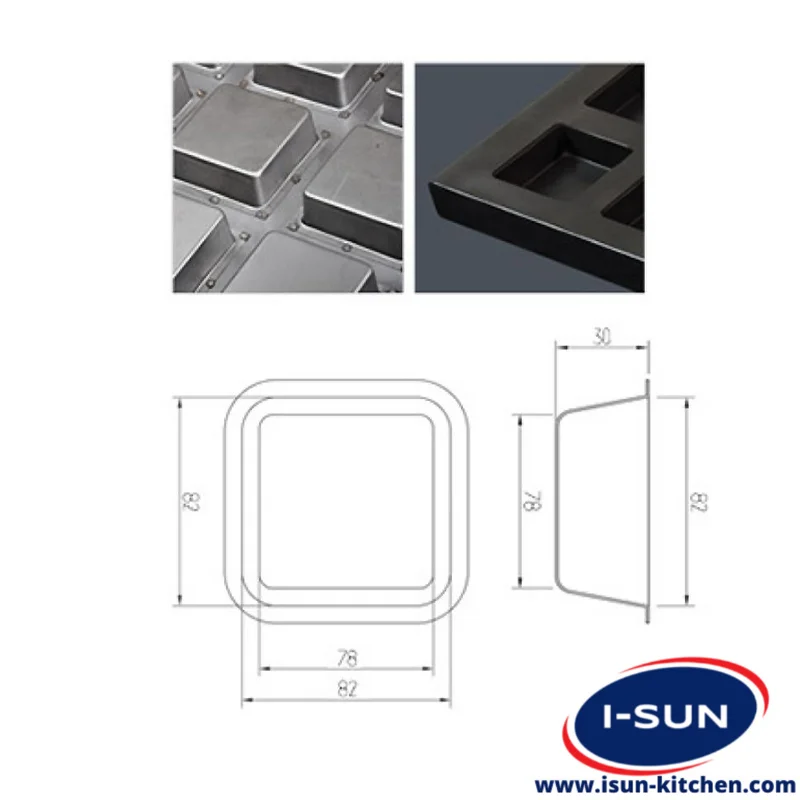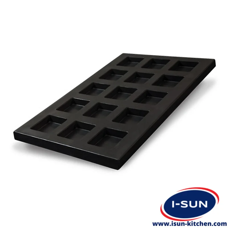 قالبهای کیک جهت پخت انواع کیکهای قنادی در شکلهای مختلف و همچنین انواع شیرینی جات تولید میشود. این قالب از جنس آهن با ضخامت ۰/۷ و روکش نچسب به صورت سینی برای پخت 15 عدد کیک مربعی طراحی و تولید شده است.