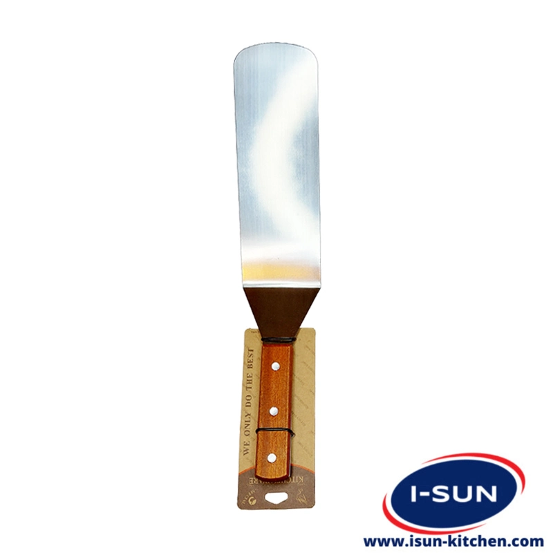 از کاردک خم برای جابه جایی مواد غذایی روی گریل استفاده می شود. دسته چوبی کاردک از داغ شدن آن و سوختن دست جلوگیری می کند و قسمت خم آن به کاربر کمک می کند تا تسلط بیشتری روی کاردک داشته باشد. با این کاردک می توان علاوه بر فشردن گوشت روی گریل به راحتی مواد را جابه جا کرد. تیغه استیل کاردک به راحتی تمیز می شود.
